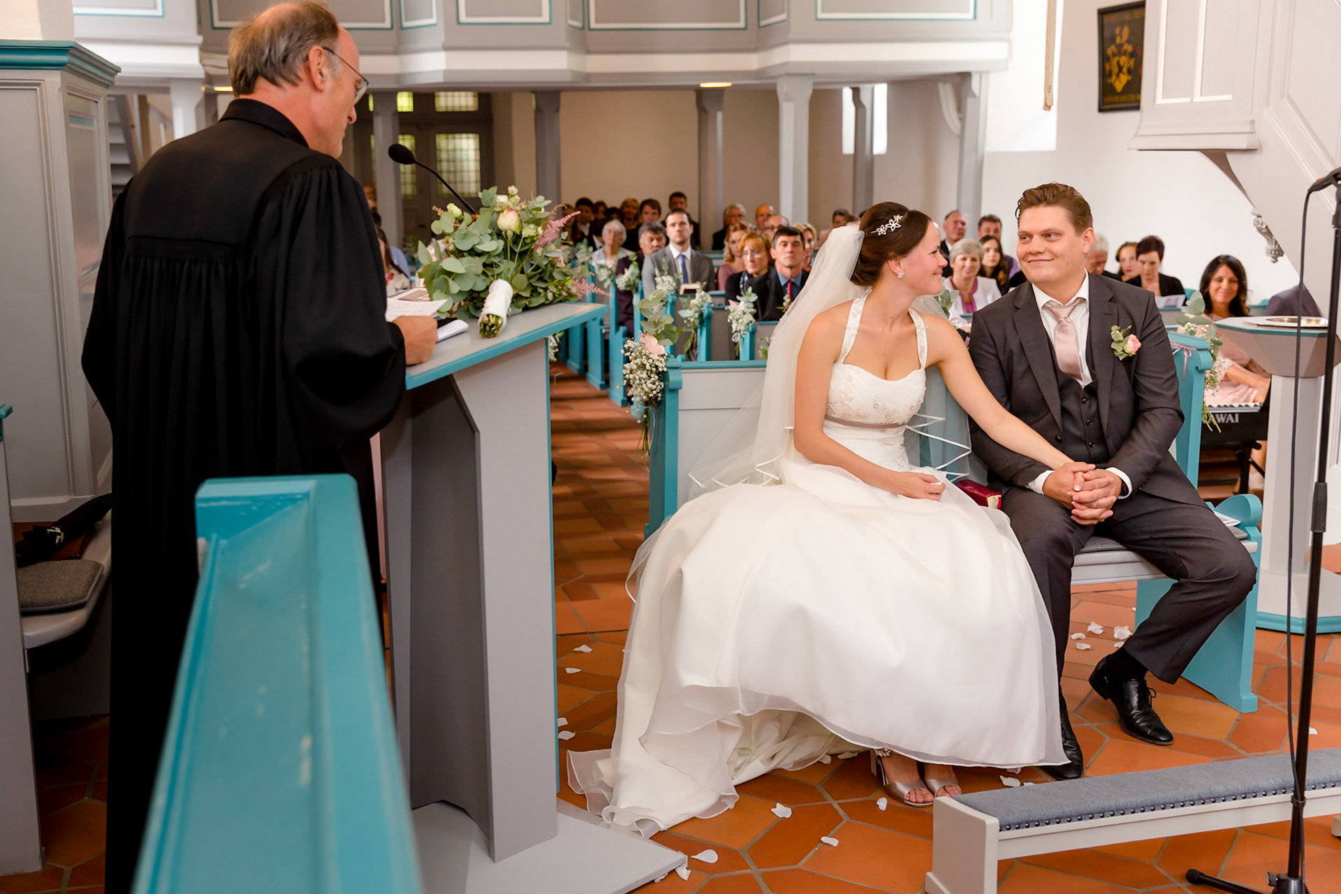 Entspannte Vorbereitung, eine wunderschöne Trauung und anschließend eine großartige deutsch-russische Hochzeitsparty: Amalia und David feiern mit Industrial-Look und Eiffelturm.