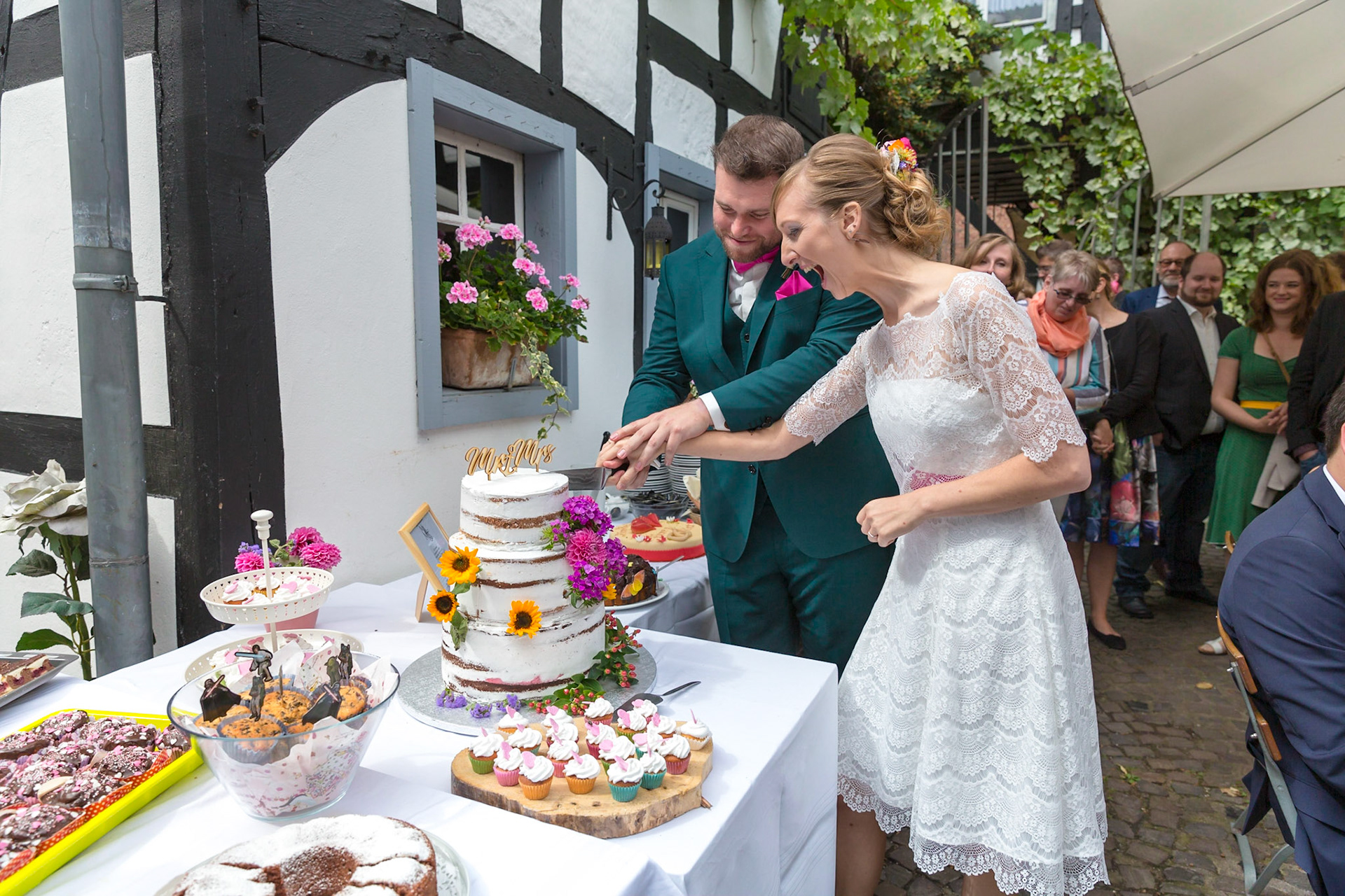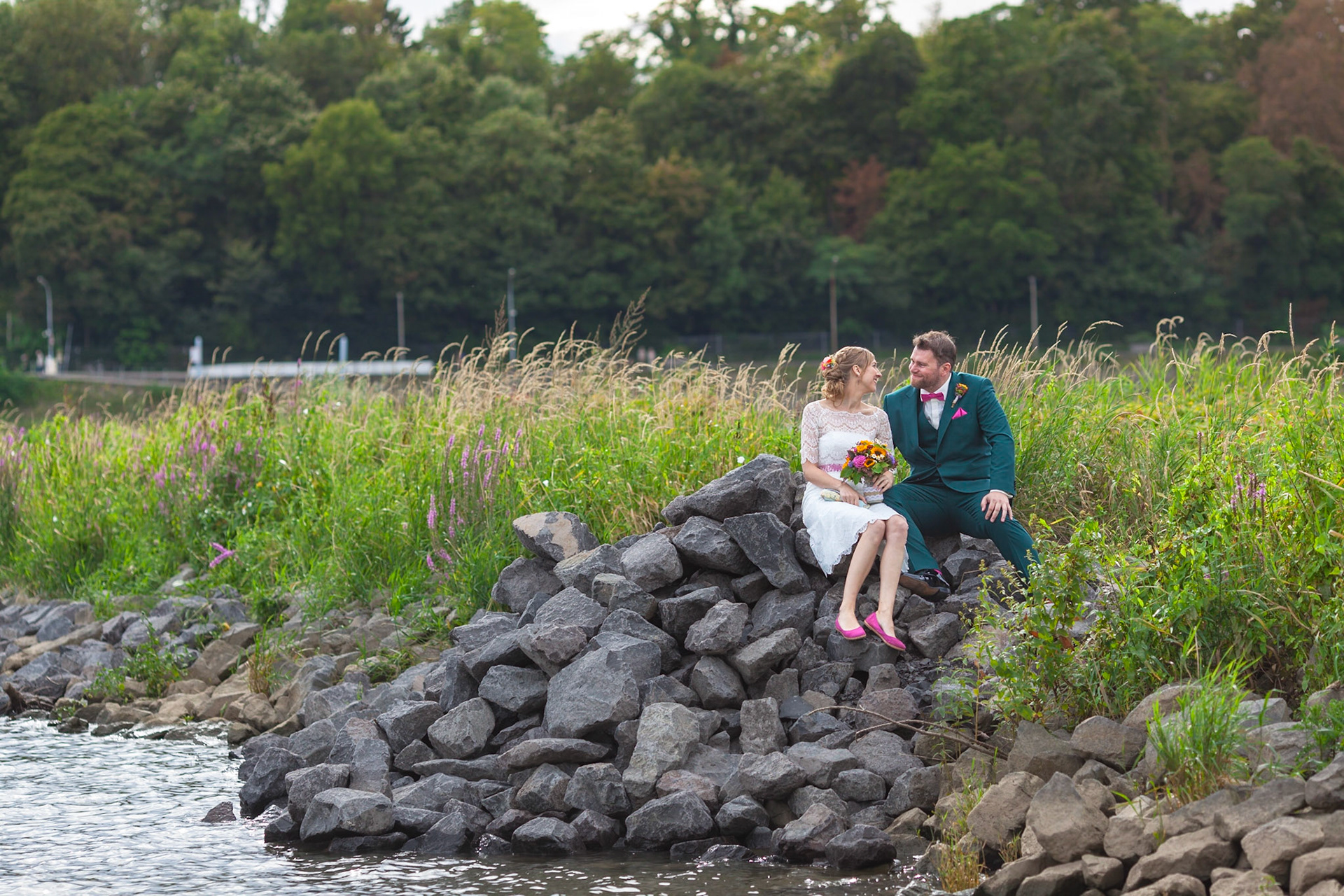 Eine Hochzeit unter freiem Himmel, Bilder am Sandstrand, eine Hullahoop-Party und später Tanz bis in die Morgenstunden im urigen Kellergewölbe: Anne & Max feiern ihre Hochzeit in Königswinter direkt am und im Rhein.